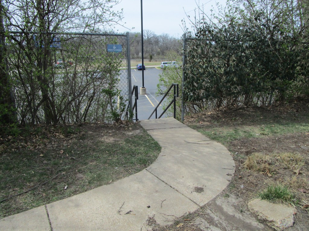 This is a small stairway kinda hidden by bushes. They lead to a nice library.